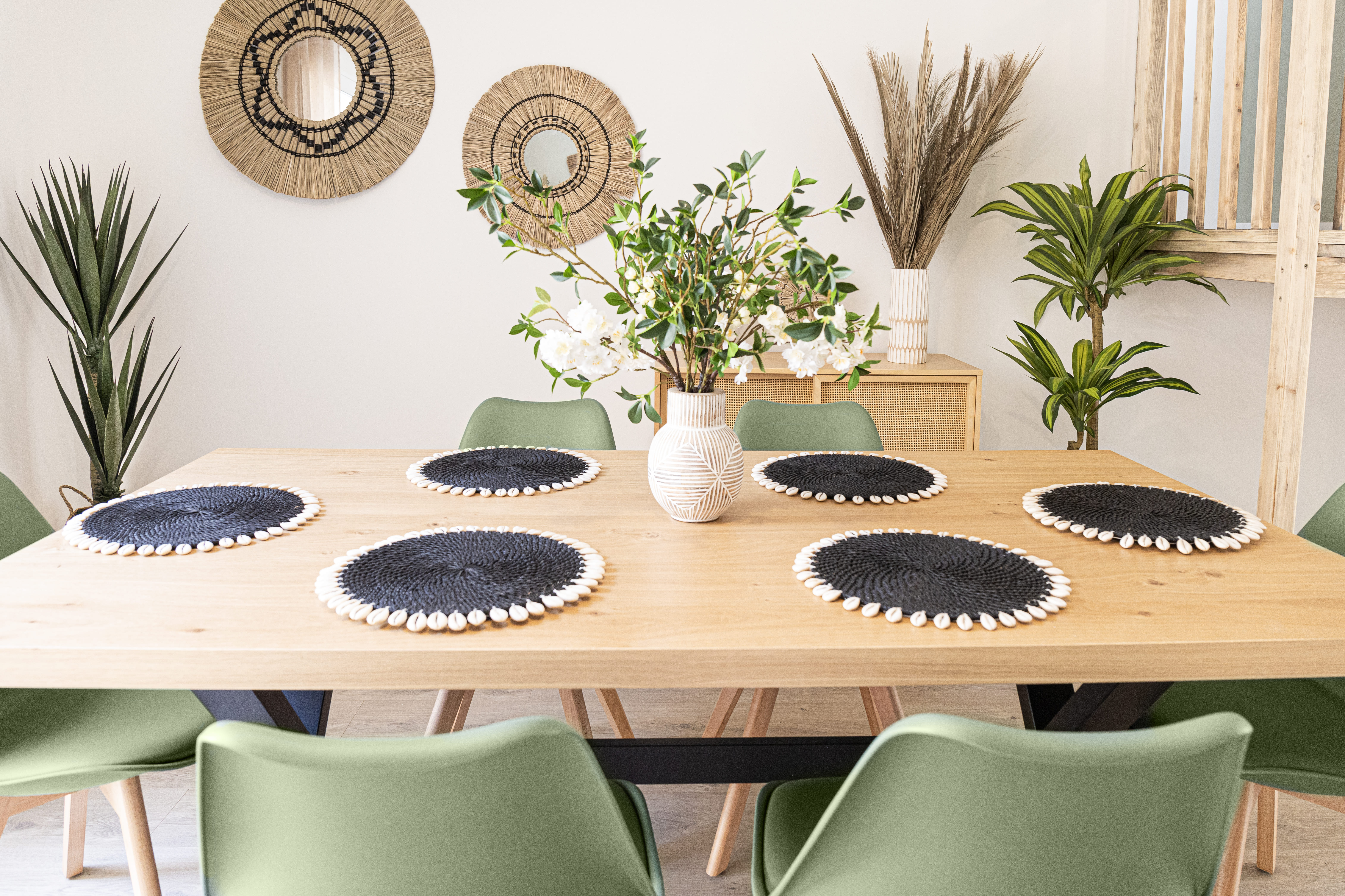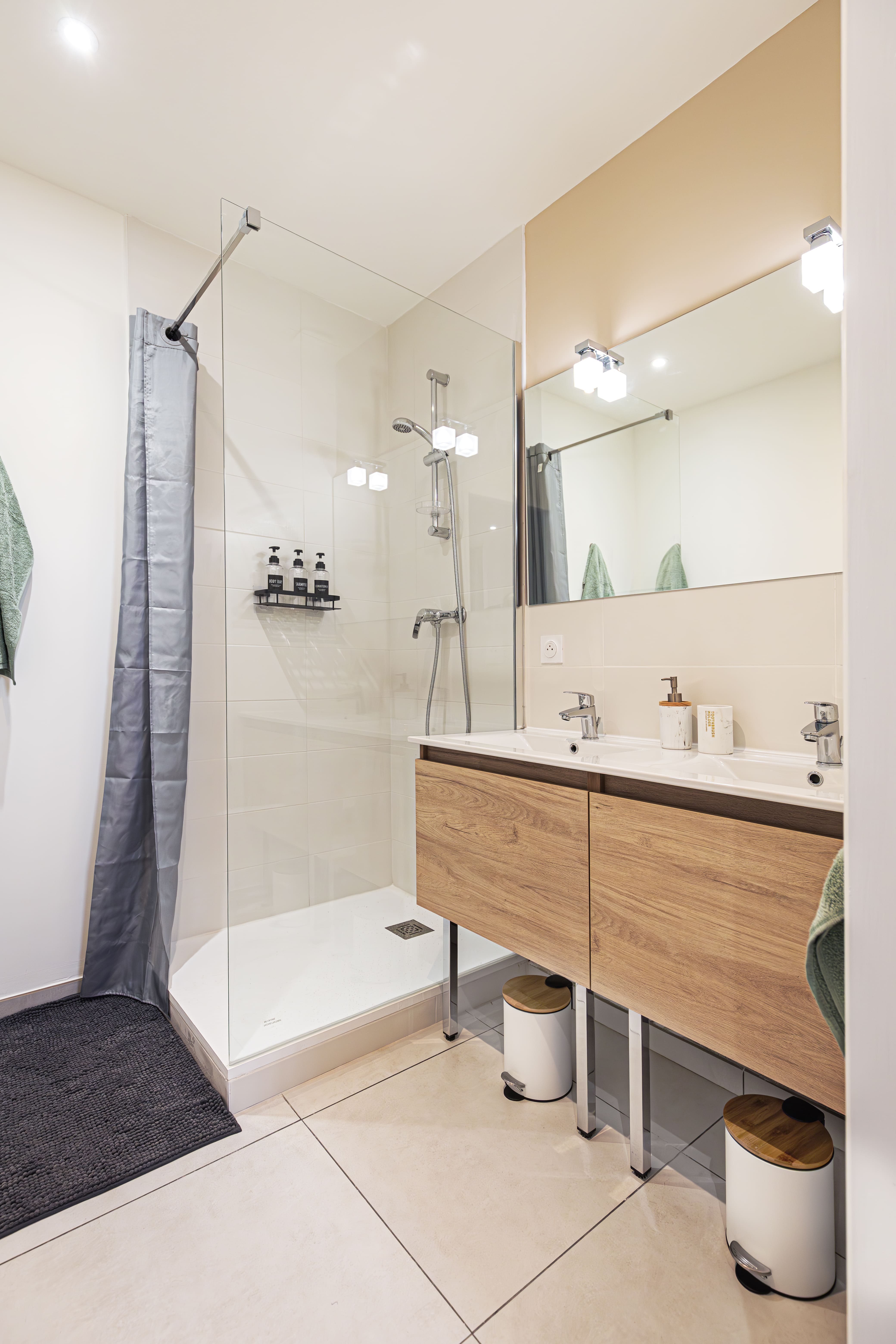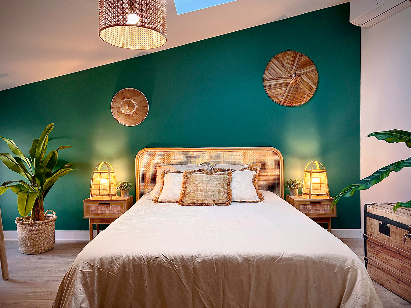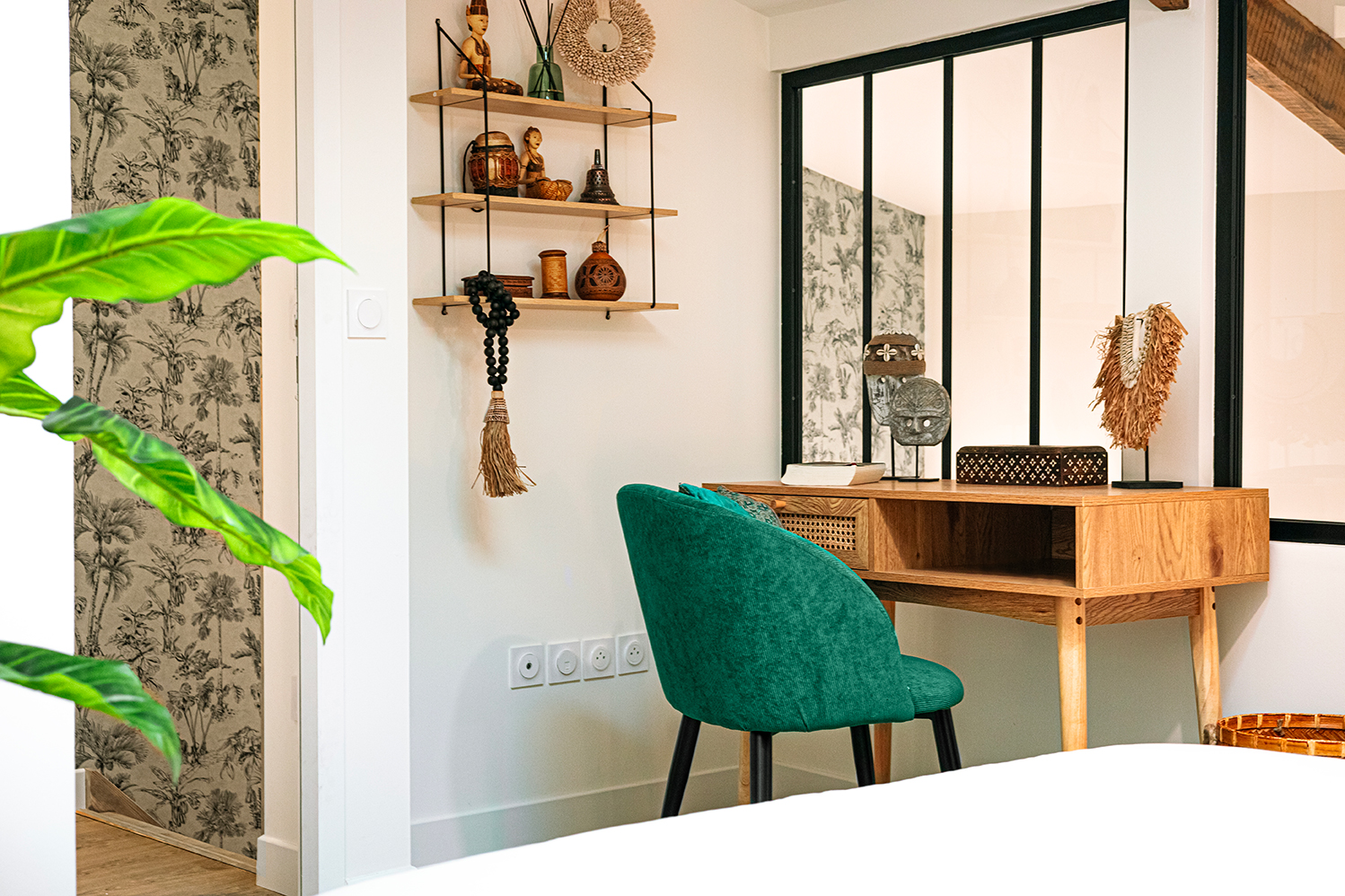 Travailleurs en déplacements professionnels ou voyageurs pour un séjour en Drôme Provençale, bienvenue en terre d’évasion. Ce lumineux T2 duplex saura vous accueillir avec sa cuisine ouverte équipée et son séjour aux touches végétales et aux matières naturelles exotiques. À l’étage, destination repos et relaxation avec une salle de bain aux allures de spa privé ainsi qu’une grande chambre meublée au charme paisible et naturel Balinais et son espace de travail. La climatisation est réversible dans tout l’appartement.